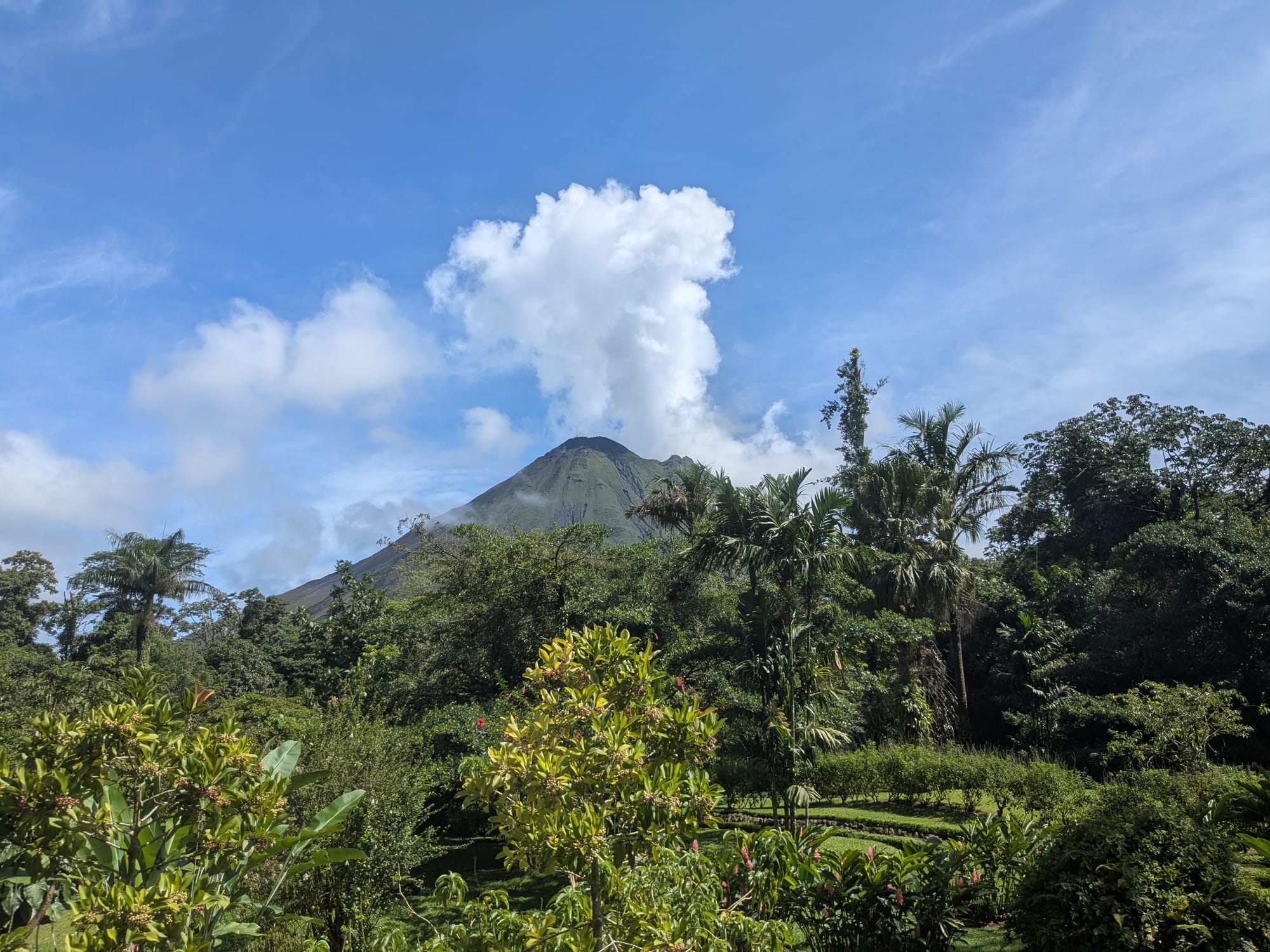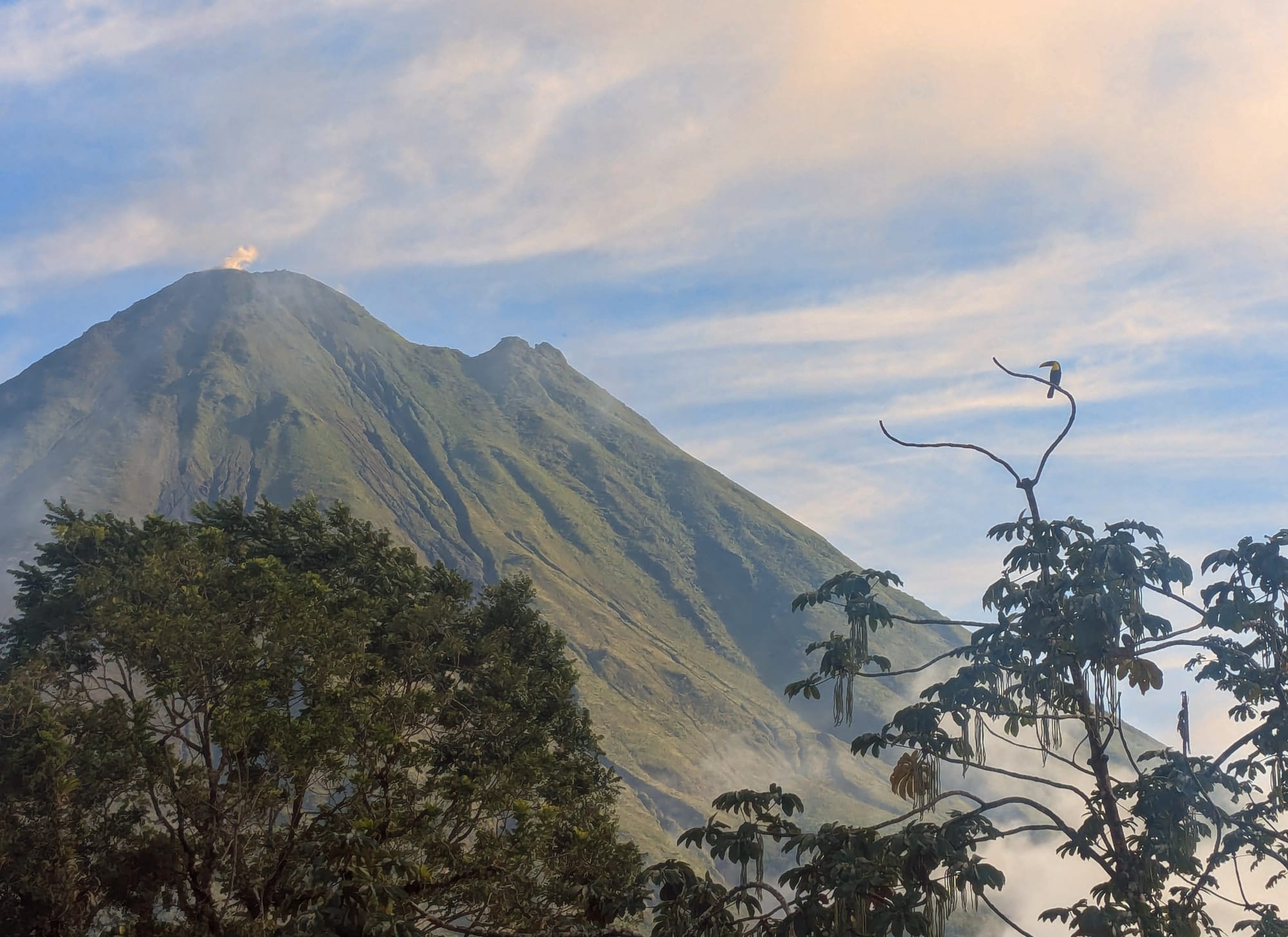 We slept with the blinds open last night and wake to a clear sight of the volcano, no cloud covering the top. We learn later that is rare for this time of year so Courts is justified in taking 78 photos of it.