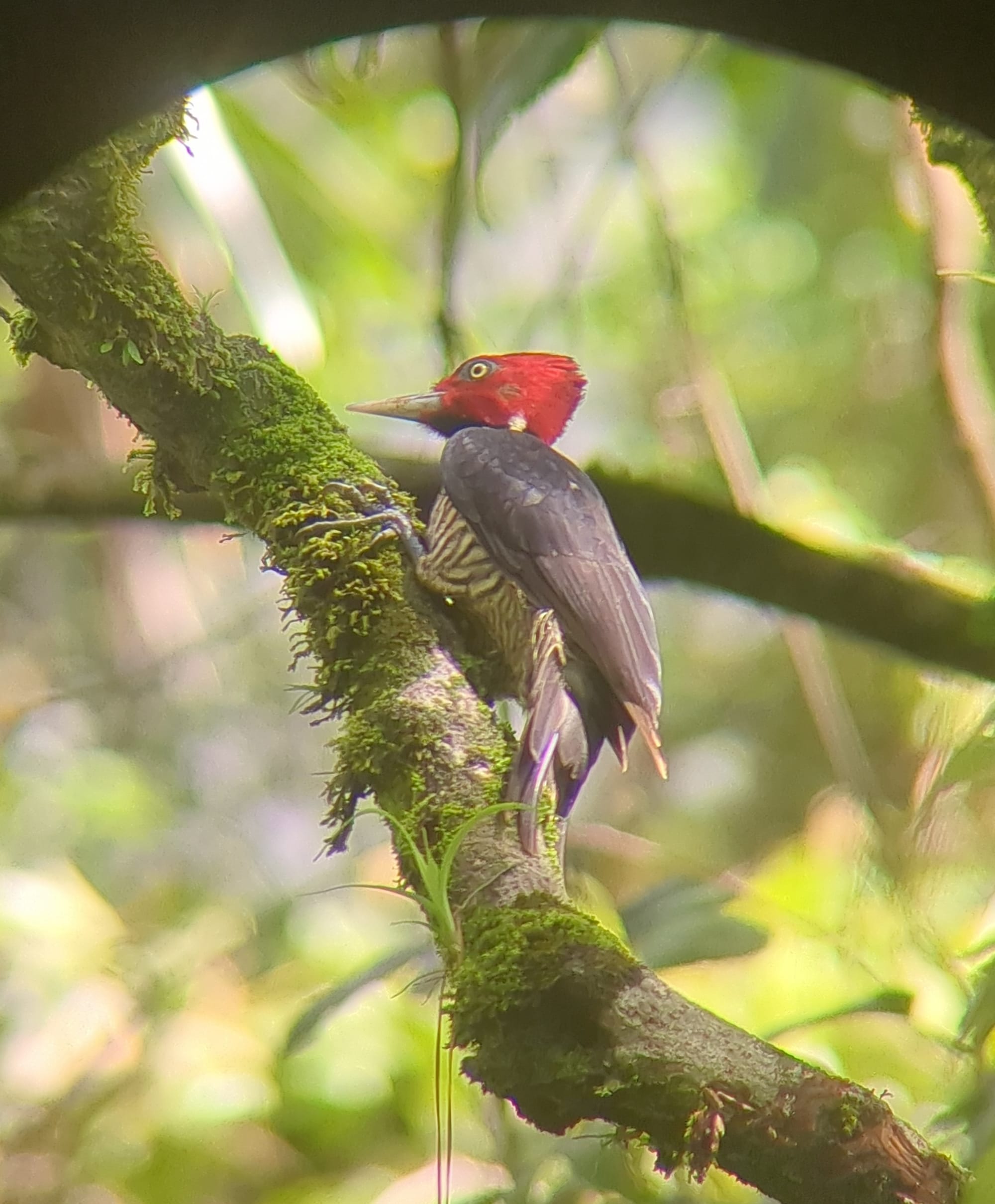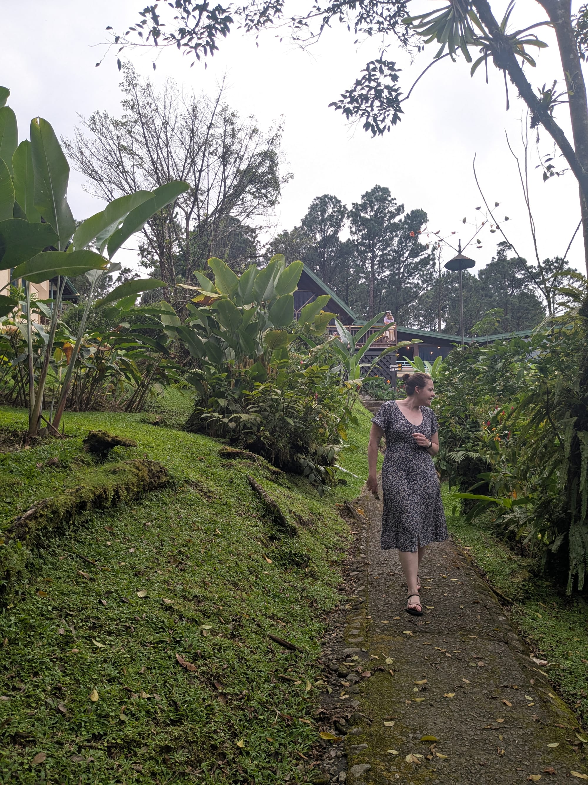 Onwards we go and we see mostly more hummingbirds, no mammals as yet. Christian tells us the monkeys make a migration across the trees near reception most evenings around 4-5, so we pencil that in. Lastly, we see a wood pecker! It's incredible. They peck at the tree branches to get to the worms and we're not talking a light tap. So cool to watch and a good looking bird to boot.