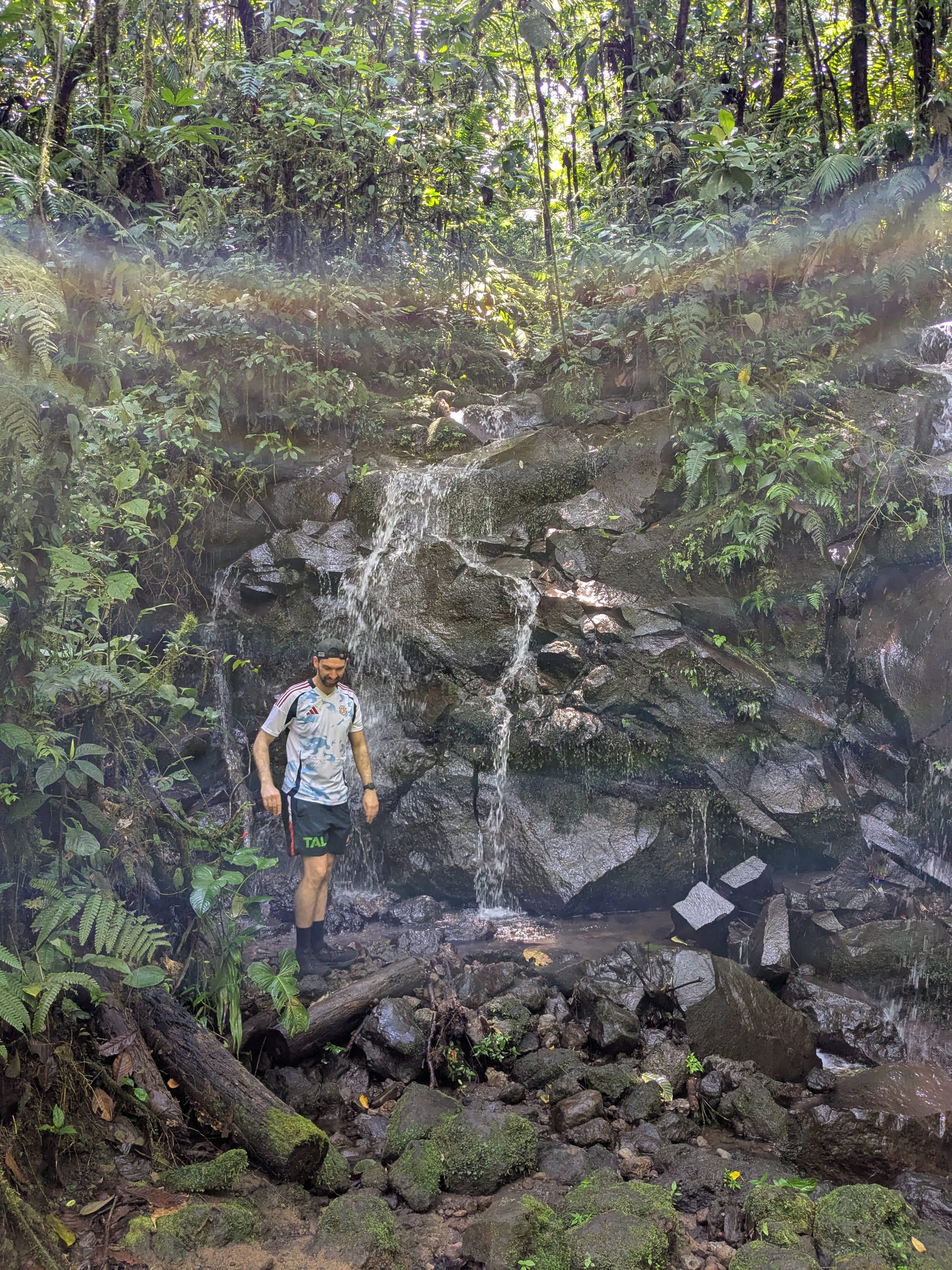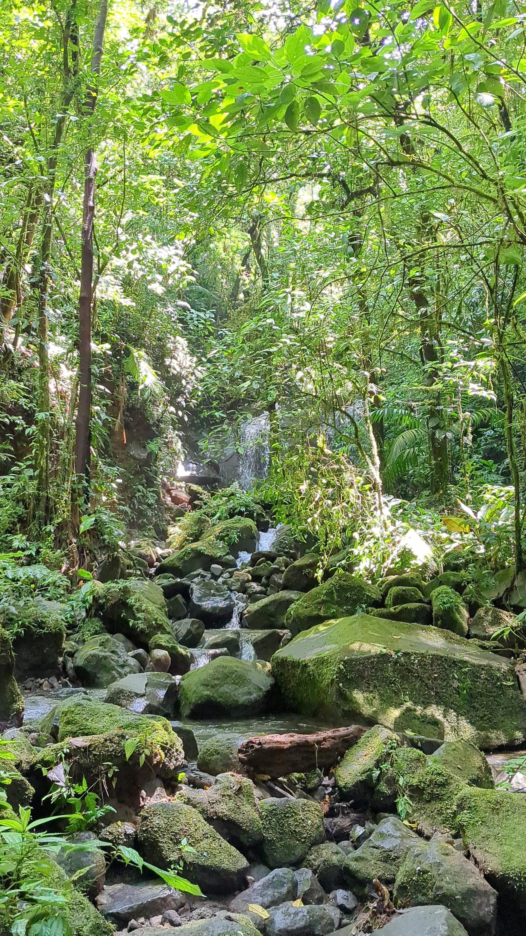 We head back to the room for more sunscreen and water and head out to check out the waterfall tracks on the property. We go through farm land, primary and secondary forest. Every part is stunning and so green.