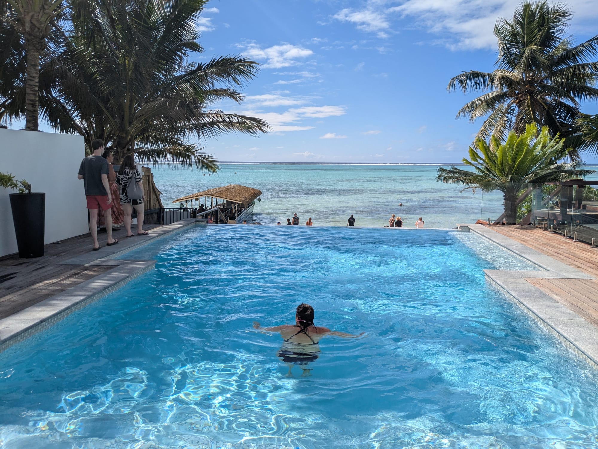 We layer up with sunscreen and go snorkelling. Our beach front is onto the Muri Lagoon. There is clear, shallow-ish water effectively circling the entire island out to the reef which separates the vast South Pacific from the island. It's larger here at the lagoon with a couple of small islands around. A perfect playground for water activities.