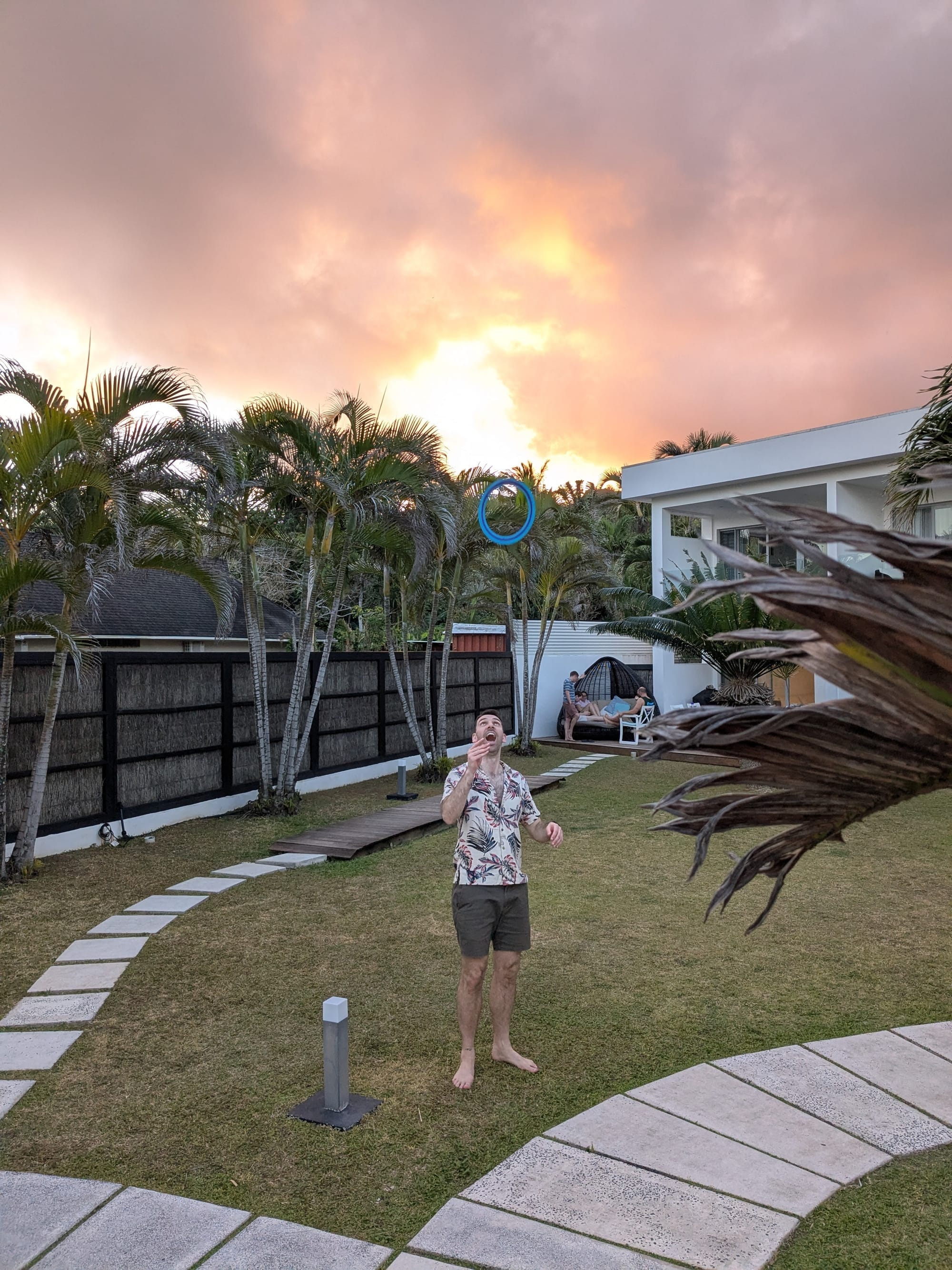 A few pina coladas, a few coronas, a bit of aerobie in the yard and some great burgers from the local a few kilometres away and we are all feeling very happy and content.