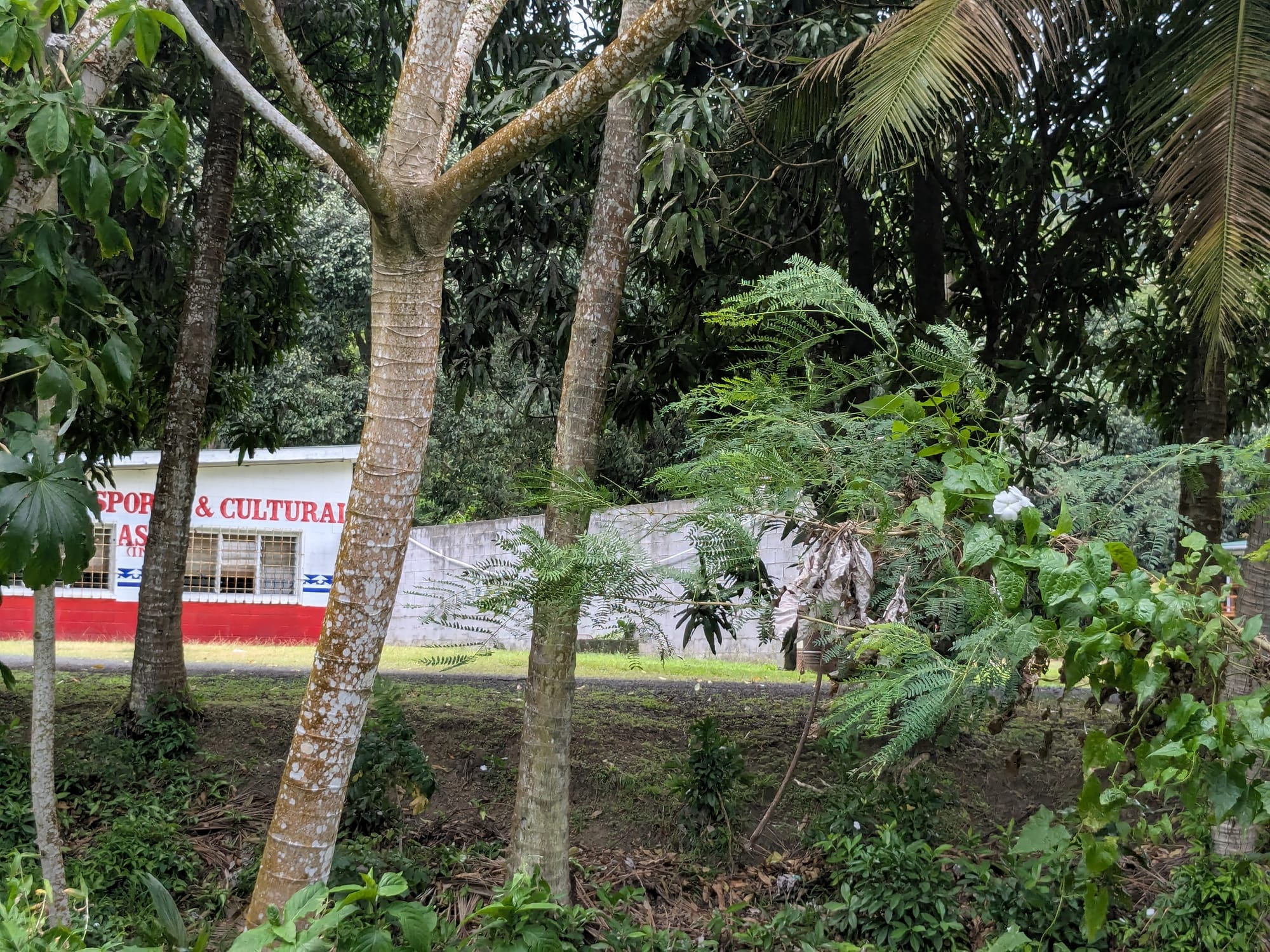 It's back in the car and Jeff's driving so we must not go back the way we came. We detour off the main road and get to see how the islanders live. Houses in differing sizes on biggish land, usually with a dog, sometimes a goat or cow and always a chicken.