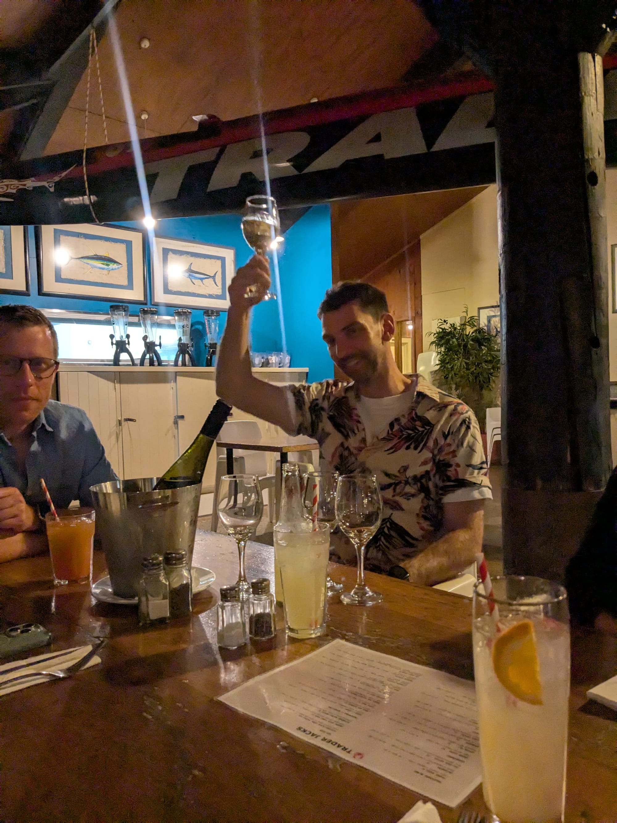 Finally it's time to hop in the van and head to dinner. We've picked a restaurant called Trader Jack that leans heavily into the fish. Being an island we figure they must do fish well and they do. We have fish curries, fish and chips, fish tacos and it's all great.