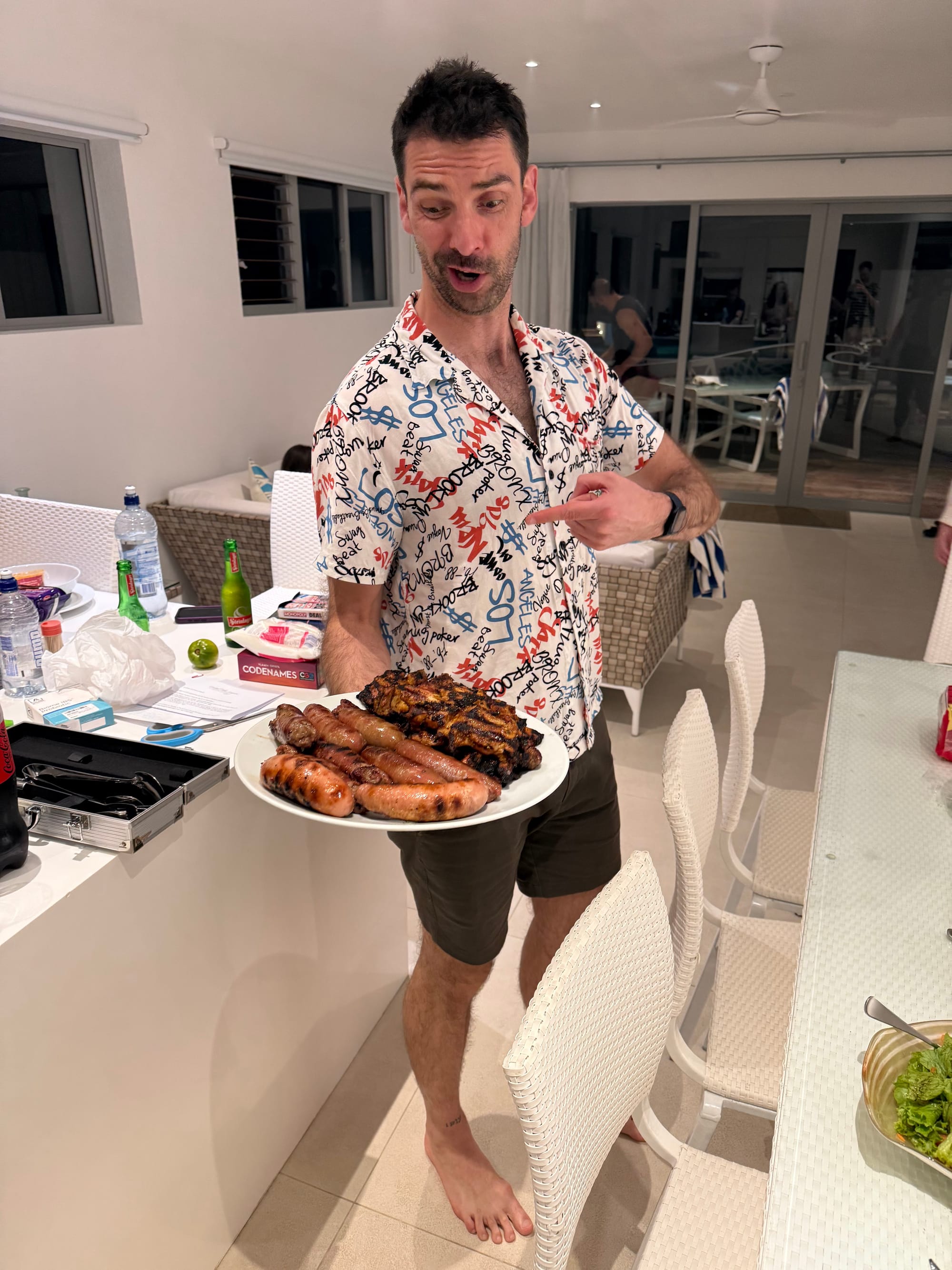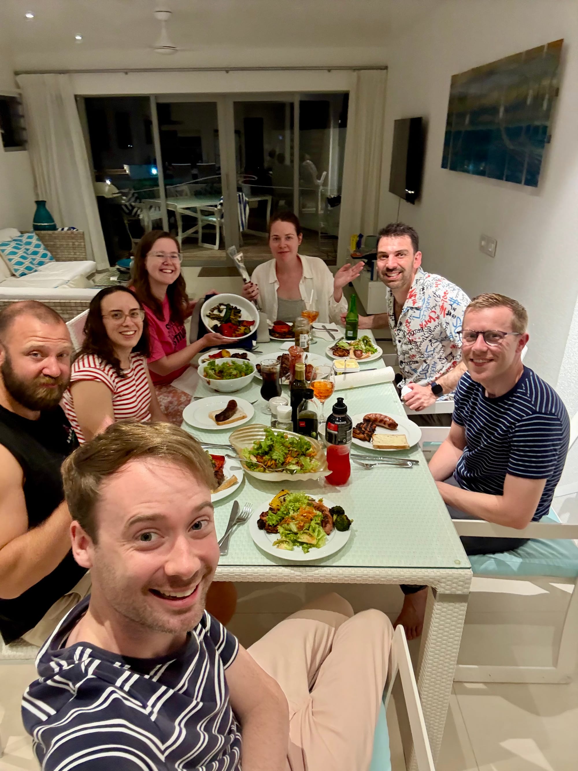 After all that excitement it's back to the villa for BBQ night. We have sausages, chicken, salads and roasted and BBQ'd veg. The meat tasted as good quality as it looked (the sausages being the best she's had, according to Courts). We finish the night with a few games of Impostor where we only call each other a few names but discover some friends are better liars than others. We head to bed early-ish, as a few of us are up early for a hike to The Needle tomorrow.