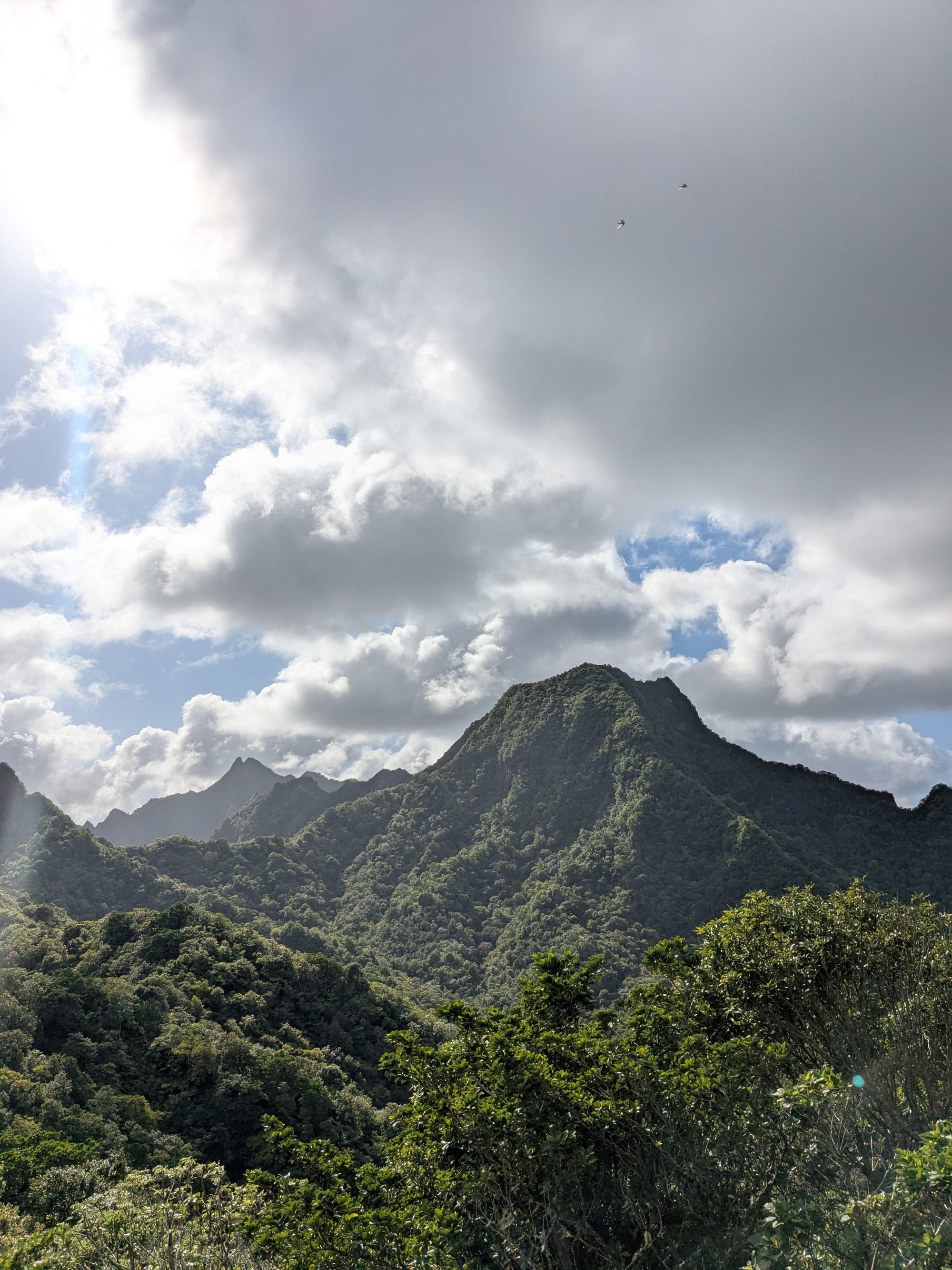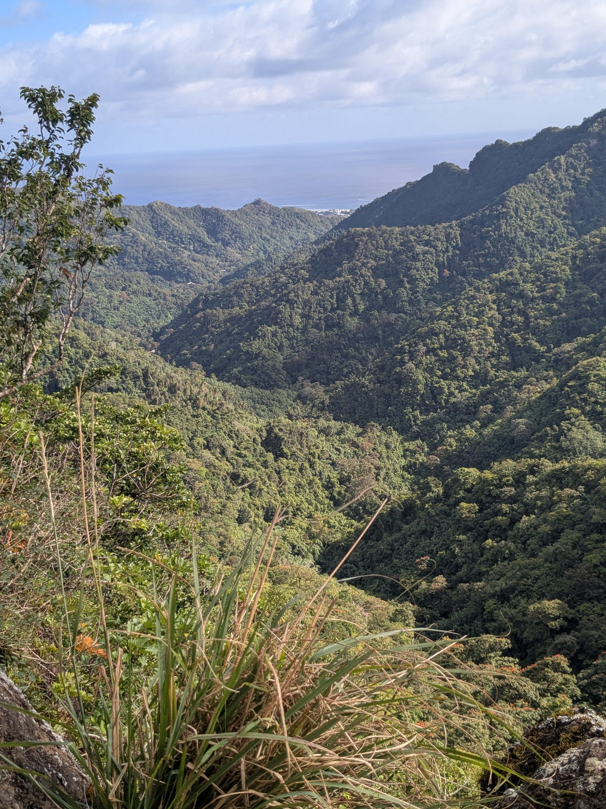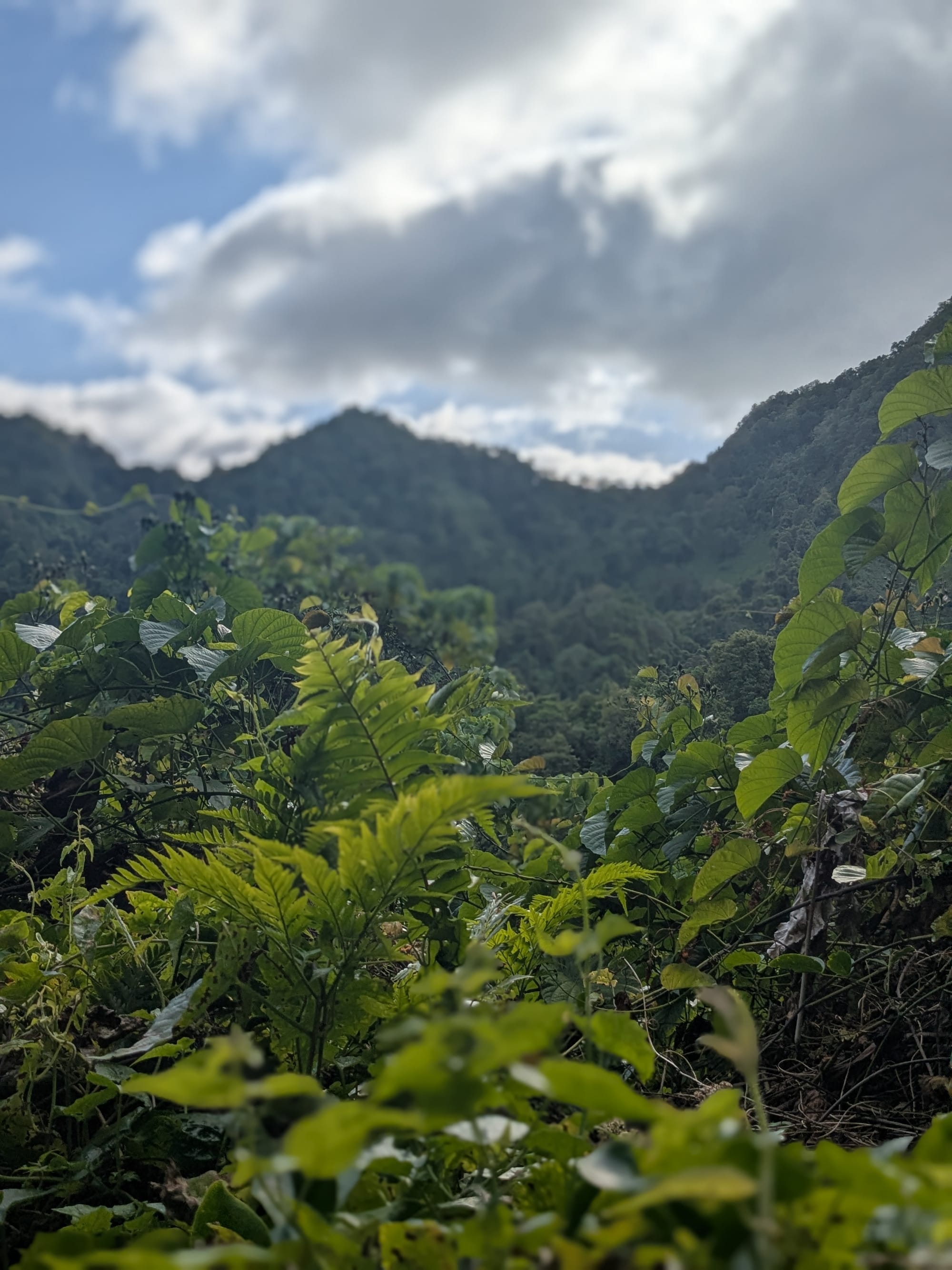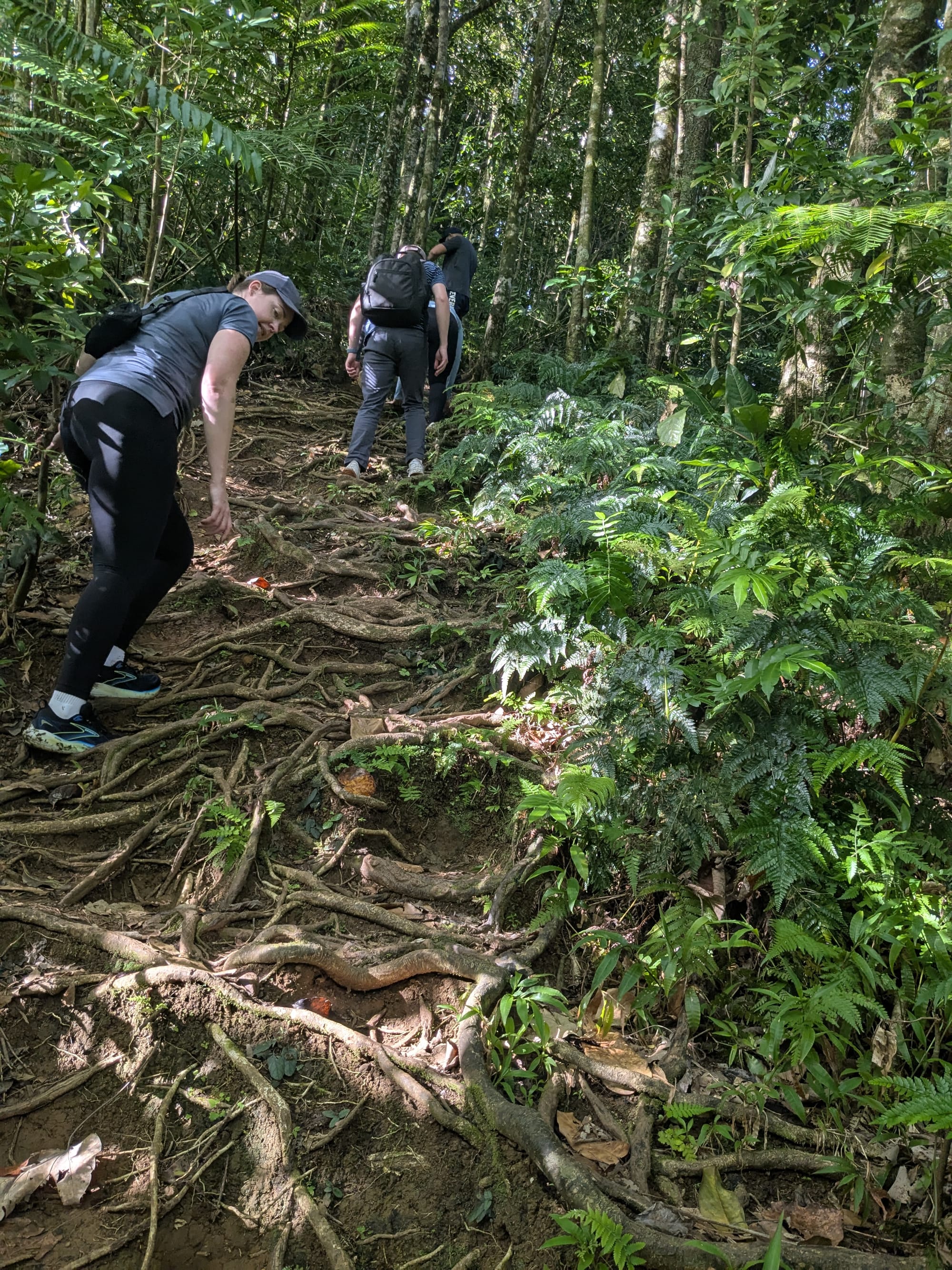The trek starts out still within some residential and then past a water treatment facility. Before long it's thick though, and we are into the darkness of the tropical rainforest. They say not to trek if it's been wet and we can see why. Most of the footing is exposed tree roots which would be incredibly slippery when wet. Luckily it's pretty dry for us, but it's still a pretty technical climb. Needing to use hands and feet for lots of it. Not to mention that the track is up a ridge, so it's a decent drop off on either side.