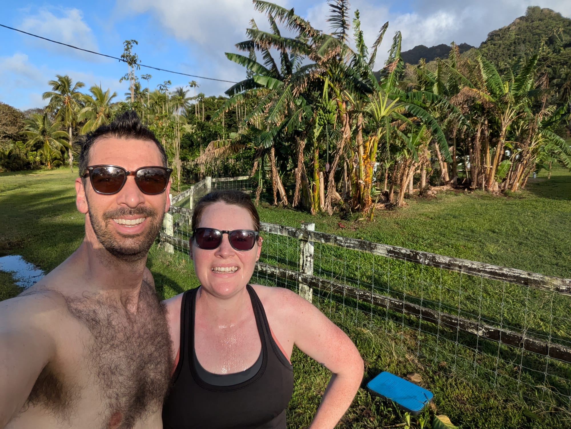 Courts has been banging on about a run for most the week and today is the day. She's managed to convince Jeff to come along because misery loves company and it will look good on the Strava profile. We head out around 7:30 to try and beat the heat. We don't. It's mostly flat and the dogs that start barking and chasing us don't bite us at least.
