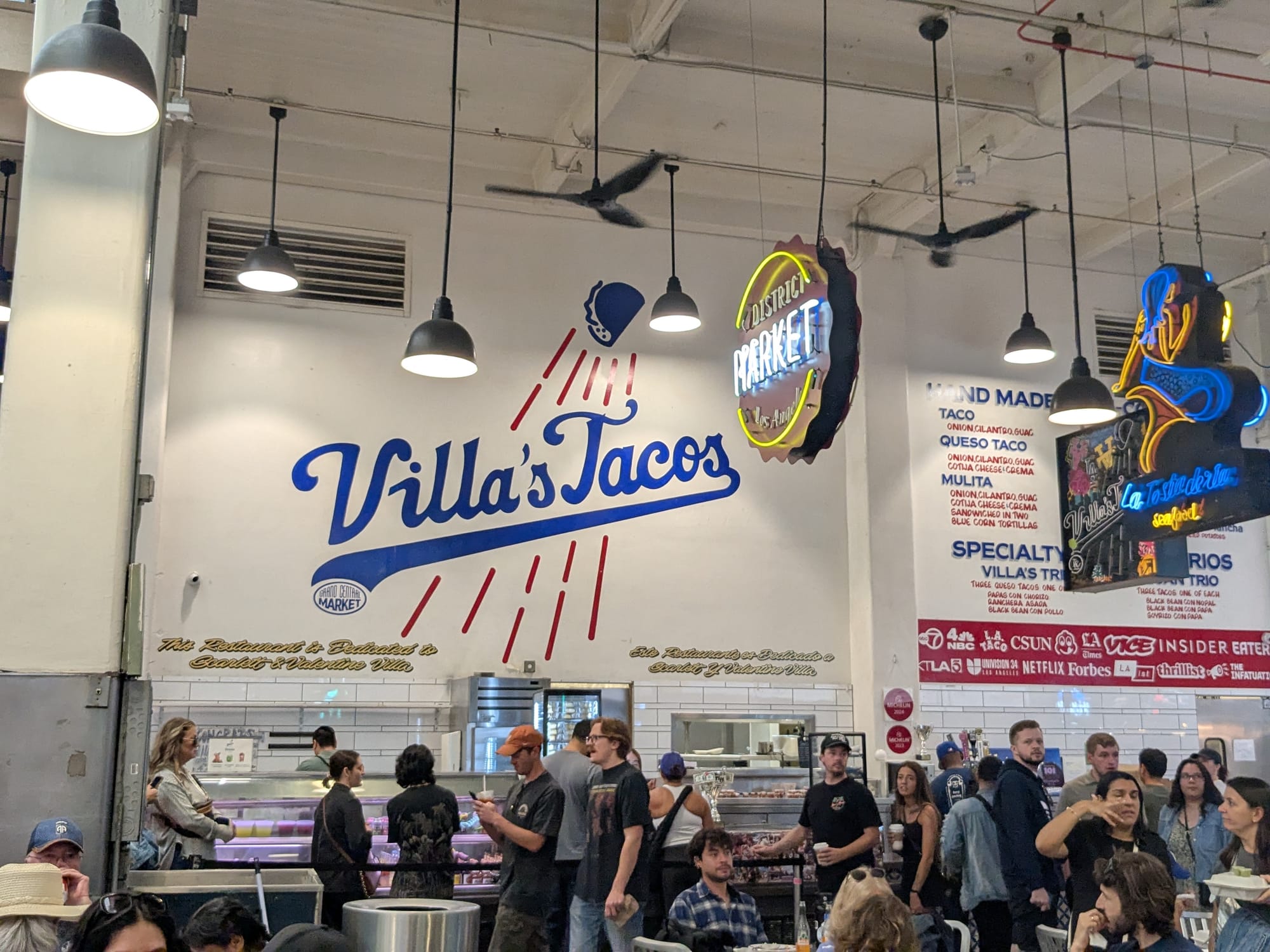 We checkout and get a 40 minute Uber to Downtown LA. We get out at Grand Central Market and wander around. We're still full from breakfast but man, does the food look good. Lots of South American influence.