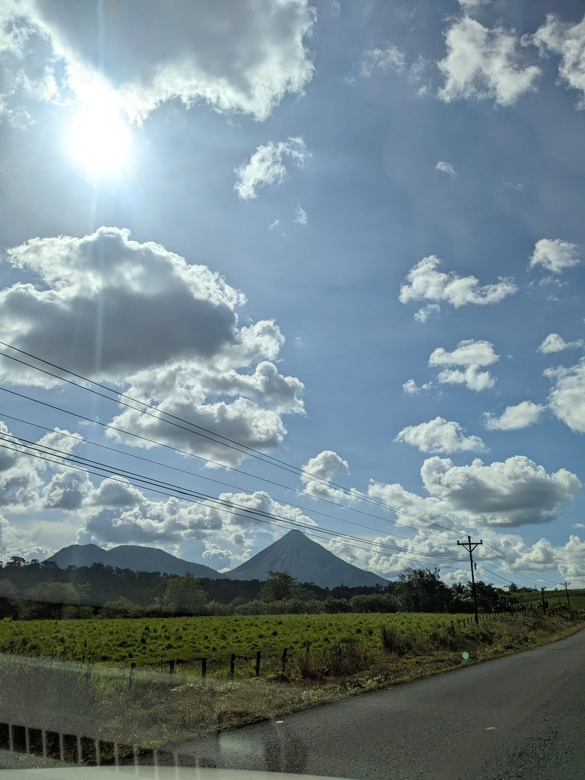 On we go and soon it's feeling very regional - we see a committee of vultures on the side of the road! We can now spot the Arenal Volcano and then we arrive in the town of La Fortuna, which is the town most tourists come to for the volcano and all the other cool tourist things like zip lining, sloth tours, coffee tours, sky bridge walks, white water rafting etc. etc. We duck in for an ice cream and an acai bowl and consult the guide to see if we should do an activity while we're here since our accommodation is another 20 odd minutes down the way.